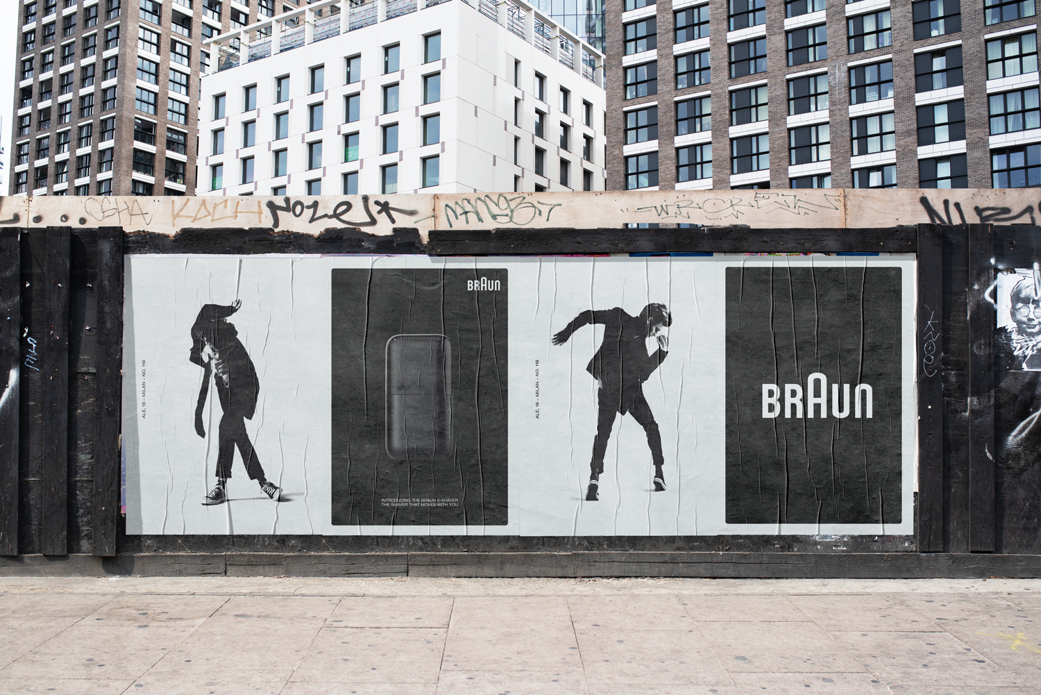 Braun came to us with the X series shaver, with it’s core attribute as portability. Gym bag, desk drawer or back pocket, it moved where you did. We focused on the freedom to move and borrowed more than a little from the work of Robert Longo.